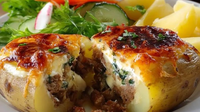 9. **Završno pečenje:** Vratiti punjene krompire u rernu i peći 15–20 minuta dok sir ne porumeni i postane zlatno-smeđ.