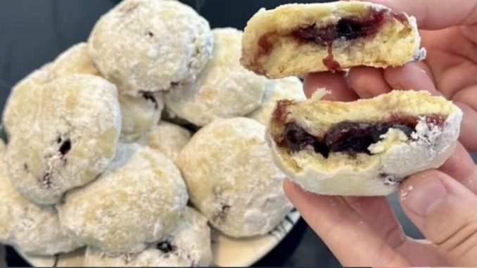 Još mlake kolačiće uvaljajte u šećer u prahu.