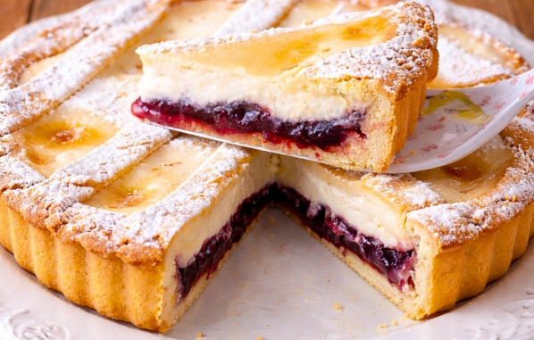Ova pita od mlečne kreme odiše tihi elegancijom i posebna je od prvog zalogaja. Ispod zlatne rešetkaste kore krije se podloga od prhkog testa, mlečna krema i blagi sloj džema. Idealan je izbor za porodične ručkove, popodnevne pauze uz kafu ili opuštene vikend pripreme u kuhinji.