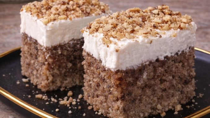 Kada se kolač ohladi, premažite ga umućenim posnim šlagom (ili ostavite bez njega ako želite jednostavniju verziju) i pospite mlevenim orasima. Seče se lako, izuzetno je sočan i mekan – pravi posni kolač koji uspeva svaki put!
