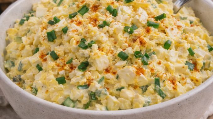 Sve se dobro promeša da se sastojci povežu, pa se posoli i pobiberi po ukusu. Salata se prebaci u činiju za serviranje i odozgo pospe mlevenom paprikom i svežim lukom ili peršunom. Najbolje je da odstoji u frižideru 30 minuta pre služenja kako bi se ukusi sjedinili. Dobija se bogata, kremasta i izuzetno ukusna salata koja ide uz sve – i zaista, svi traže još.