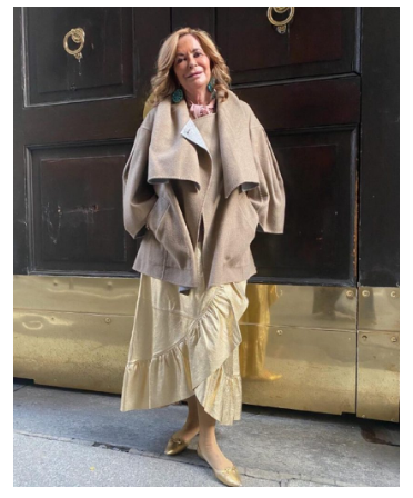 Rosell preferira monokromatski pristup odjeći. Odjeća sastavljena od jedne sheme boja naglašava percepciju izdužene siluete, poboljšava vitkiji izgled i pruža optimalnu ravnotežu nijansi. Ova metoda služi kao svestrana strategija za žene starije od 50 godina za postizanje suvremenog i modernog izgleda. Osim toga, važno je uzeti u obzir pribor. Kako bi finalizirala svoju odjeću, Rosella dosljedno integrira vintage nakit i sunčane naočale. Veliki kameni zlatni nakit, uparen s naočalama, ima dvostruku funkciju: on je i praktičan i temeljni aspekt njezina osobnog stila, ističući njezinu jedinstvenost i sofisticiranost.