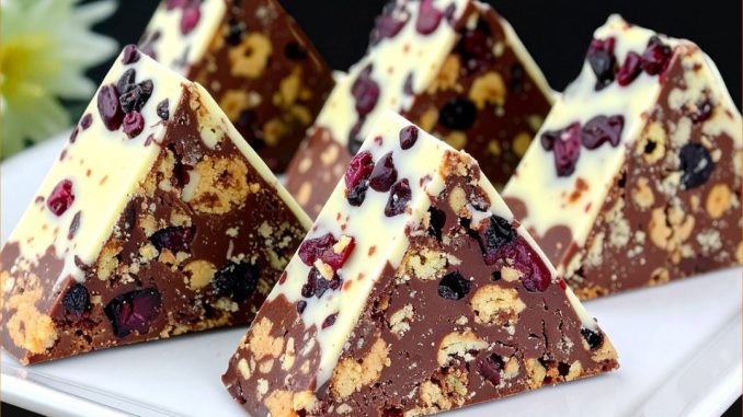Kombinacija intenzivne čokolade, hrskavih keksa i dodatka suhog voća i orašastih plodova daje ovom desertu savršenu ravnotežu tekstura. Svaki zalogaj je mekan, ali istovremeno i lagano hrskav, s bogatim okusom koji se dugo pamti.